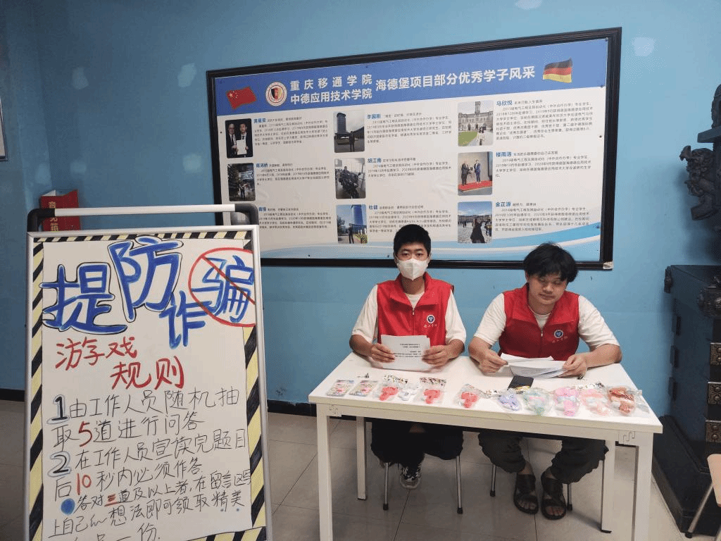 当今社会经济的高速发展,带来了金融业、通讯和网络技术的迅猛成长,也方便了人们在电子支付、电话(网络)银行等领域的资金往来。但随之而来的,是电信网络诈骗的快速滋生与蔓延。当前,电信网络犯罪猖獗,手法多样,为贯彻落实重庆市关于打击治理电信网络新型诈骗相关通知,进一步提高学生防骗、识骗能力,遏制诈骗分子持续作案,德工青协的志愿者们于5月26日至5月27日在德国工程学院开展了“谨防诈骗,牢记心中”的反诈宣传活...