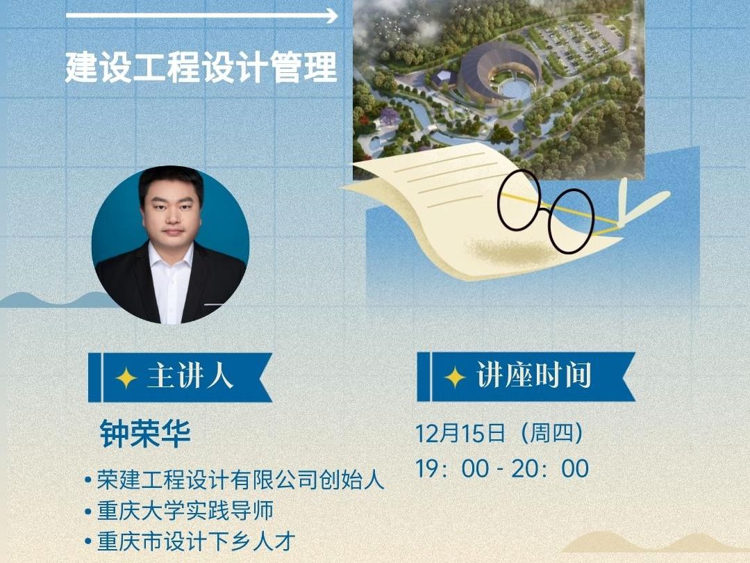 本周四晚上七点德国工程学院特邀荣建工程设计有限公司创始人钟荣华为我校师生介绍建设工程设计管理,分享创业经验!讲座时间:2022年12月15日19:00-20:00讲座方式:腾讯会议号125-577-208