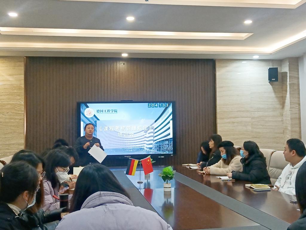春雨润万物,教师培新知。为建设和维护我校的优良校风和学风,严肃考试纪律,规范考试管理。2023年2月22日16:00德国工程学院老师们共聚于德工会议室进行《重庆移通学院课程考核管理规定》培训。此次会议由机械双语教学教研室谭劲秋老师与杨洪老师分别讲解,德国工程学院全体教师参加。在本次会议上老师针对每一章内容都进行了详细的讲解与解读,并且着重对部分规定进行强调,机械双语教学教研室谭劲秋老师还结合实际情况举例说...