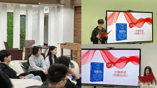 2024年10月30日,德国工程学院悦读圈迎来了本月导师集体活动。本次活动由杨洪、张亮、袁潇、邱晨四位导师精心策划,旨在通过丰富多彩的形式,促进师生间的交流,激发学生的阅读兴趣,同时为同学们提供一个展示自我、交流思想的平台。 “大咖阅读”环节是本次活动的重头戏。首先,向彦丞和周虹伶两位同学为大家带来了《特斯拉传》的精彩分享。他们通过生动的语言和丰富的图片,向在场师生展示了特斯拉传奇的一生,以及他在电动汽车和可再生能源领域的卓越贡献,...