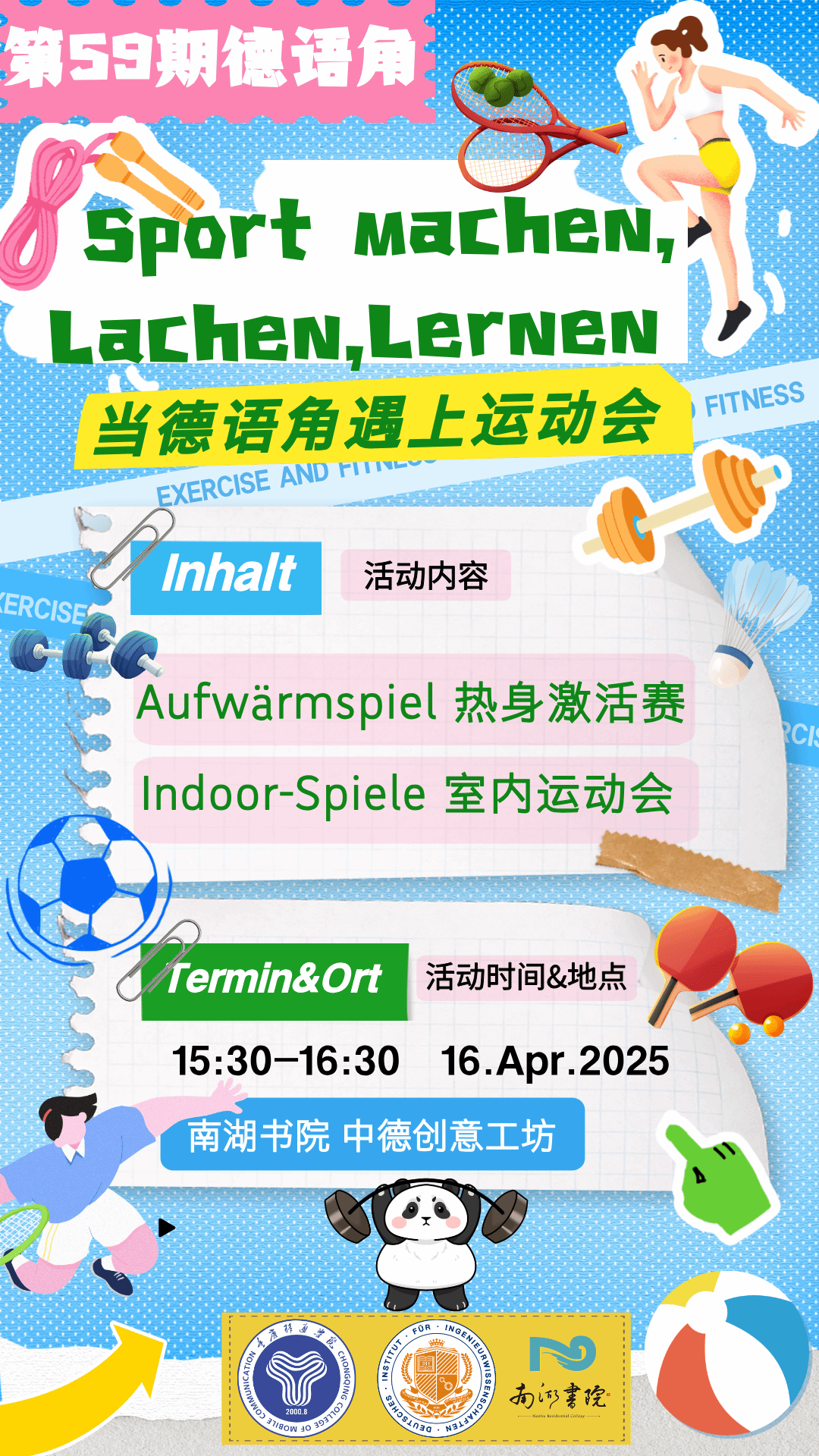 “Sport machen, Lachen, Lernen: 当德语角遇上运动会” 亲爱的同学们:春风拂面,阳光正好,正是运动与学习的好时节。本周,一场充满活力与欢乐的德语学习之旅即将开启,快来加入我们吧!在本次活动中,我们将运动与德语完美融合,通过各种有趣的运动环节,让同学们在运动中学习德语,感受语言的魅力,让德语学习不再枯燥乏味。活动现场设置了多个互动环节,同学们可以展示自己的德语水平和运动知识,与其他同学一较高下,赢取丰厚奖品。...