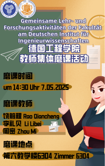 以磨课为刃,雕琢教学细节之美;凭研讨为灯,照亮专业成长征途;于思维交锋间萃取精华,齐心同筑教育发展新高地!德国工程学院2024-2025学年第二学期第十一周教师磨课活动,期待您的参与!