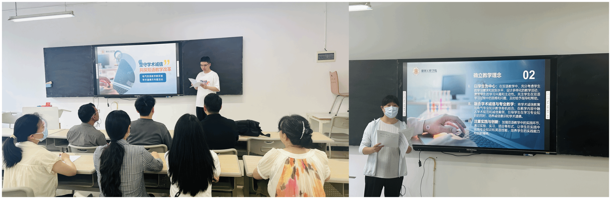 2025.05.22近日,德国工程学院电气双语教学教研室举办了以“坚守学术诚信,共探双语教学改革”为主题的学术道德月活动。活动从科研与教学不同维度展开研讨,旨在筑牢学术诚信根基,推动双语教学高质量发展。活动伊始,电气、机械专业负责人任博和王瑞老师分别围绕双语教学改革进行发言。他们指出,双语教学不仅是语言形式的转换,更是教学理念与思维模式的革新。在课程设置上,需紧密结合专业前沿知识,优化中英文、中德文教学内容的比例与衔接;...