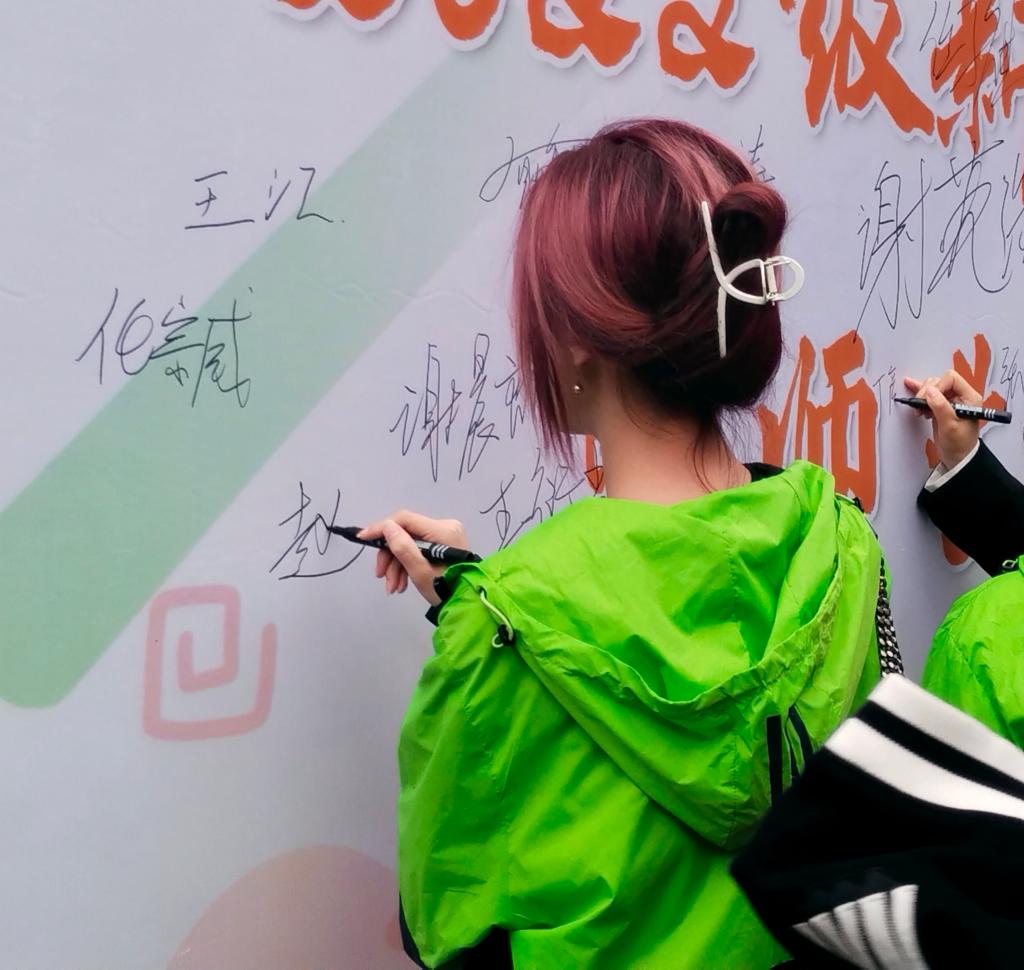 典礼开始前,同学们身穿校服,学生代表们身着正装,在红毯入口签到墙上签名留念,佩戴学院徽章,并在贺卡上书写对大学生活及对学校的展望与期待,一展德工学子的优良风范与积极参与活动的热情。