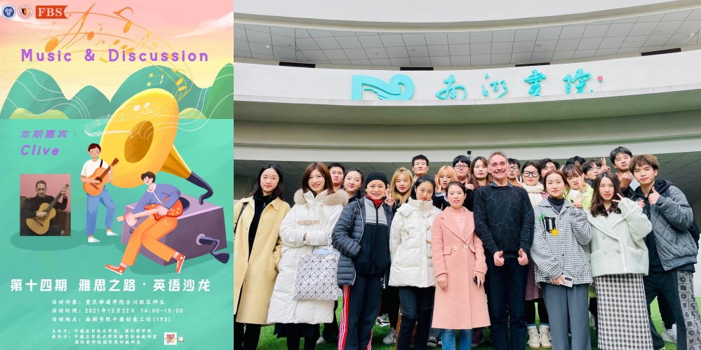 不知不觉我们来到本学期最后一次即第十四期雅思之路·英语沙龙。以“四位一体双院制”人才培养模式为指导,不断寻求完满和专业的极致融合,中德应用技术学院雅思英语教研室和国际商学院国际商科教研室始终坚持为移通师生搭建既有趣又有料的国际化英语交流平台,近期,在南湖书院中德创意工坊成功开展以“Music & Discussion——‘乐’享不停”为主题的沙龙活动,由外教Clive主持,雅思教师、国际商科教师、外国语学院教师、优秀学生代表参与。