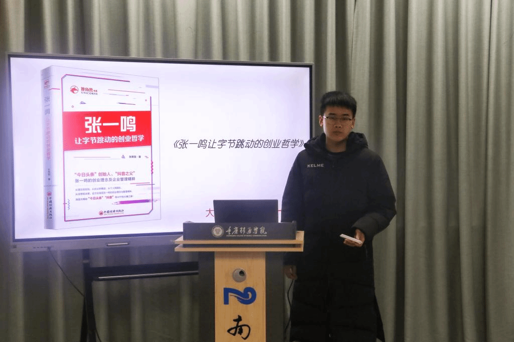 然后,邓子坤同学分享的是《张一鸣:让字节跳动的创业哲学》,他从这本书中明白了我们都是人,不是机器,会疲劳,会心不在焉。人的状态极大地影响了效率。睡眠让人清醒,锻炼流汗让人身心舒适,轻微的压力让人更有动力,间歇性的休息让人不断消除疲态。所以,要顺应人的规律调节自己的状态,让情绪服务于自己,而不是阻碍自己。最后一位谢君杰同学带来的是《硅谷钢铁侠》,从马斯克身上,谢君杰同学学习到了三点:要有远大的梦想,要有持之以恒和行动,要有积极乐观的态度。