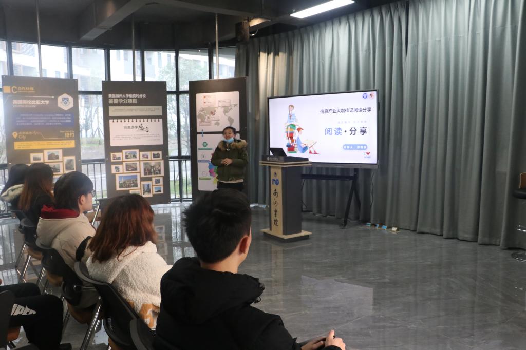 为全面落实“信息产业大咖传记阅读计划”这项重大工作举措要求,打造书香校园,拓宽学生的知识面,并在读书实践活动中陶冶情操,获取真知,树立理想。中德学院于12月13日12:00,在南湖书院国际文化展厅开展了“信息产业大咖传记阅读计划”阅读计划读书分享会,老师与同学们共同分享阅读大咖书籍后的收获。