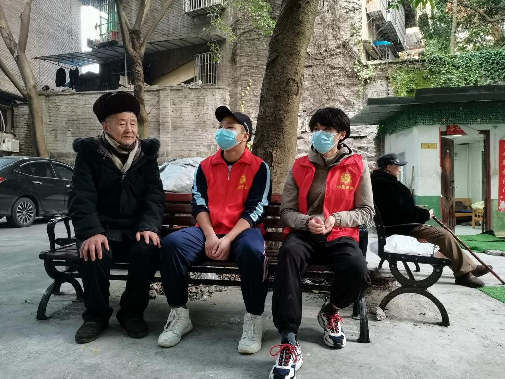 下午四点整,志愿者们乘车抵达九九老年公寓。抵达后,志愿者们便开始了志愿活动。有的志愿者搀扶老人在走廊外散步和聊天,有的志愿者为老人捶背按摩,有的志愿者为老人们整理床被,将屋子里的灰尘和院中的落叶打扫干净。