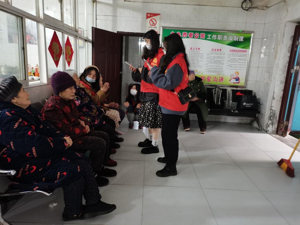 除此之外,志愿者们还积极为老人们准备了精彩的文艺表演,向各位老人们展现出自己的才艺,精彩绝伦的表演得到了老人们的认可和掌声。