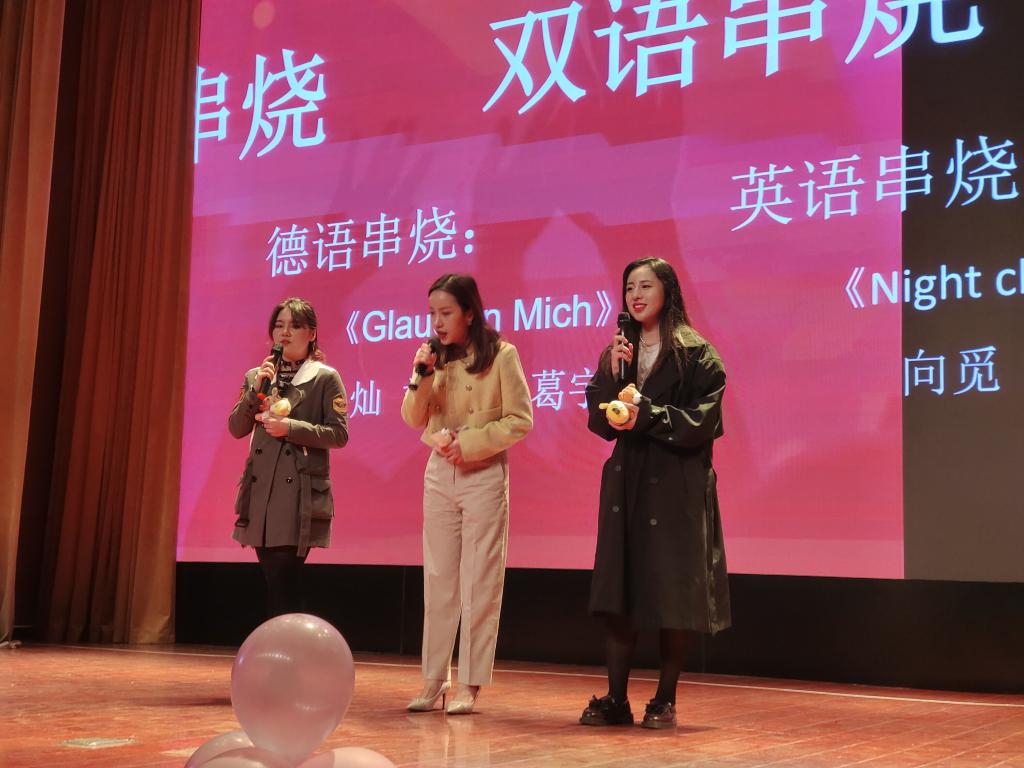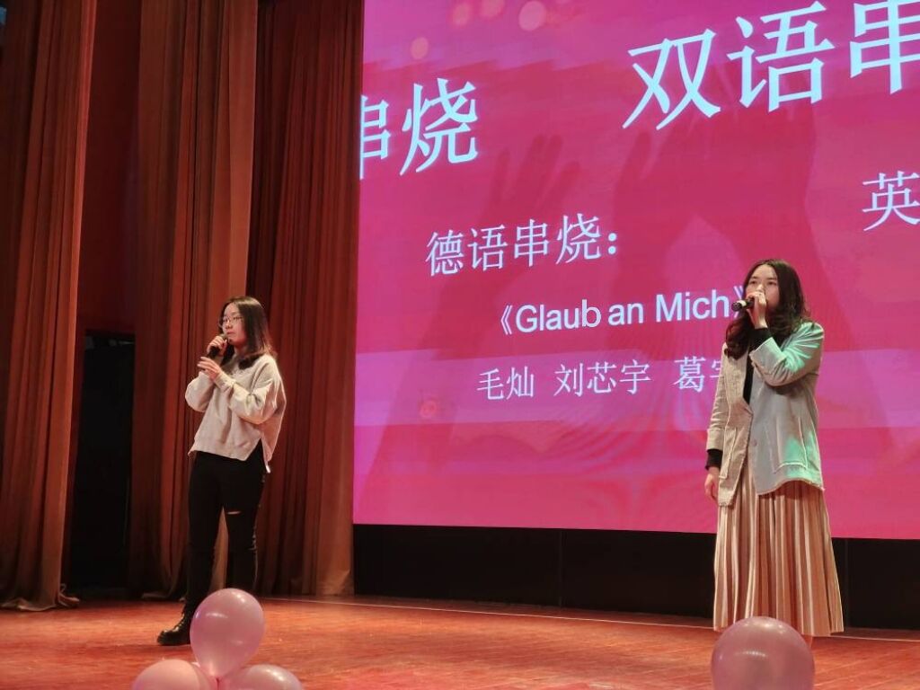 然后,向觅老师和陈菲杨同学带来的英语歌曲《Night Changes》,毛灿老师和葛宇晨、刘芯宇两位同学带来的德语歌曲《Glaub an Mich》,将中德文化节的氛围推向最高潮。