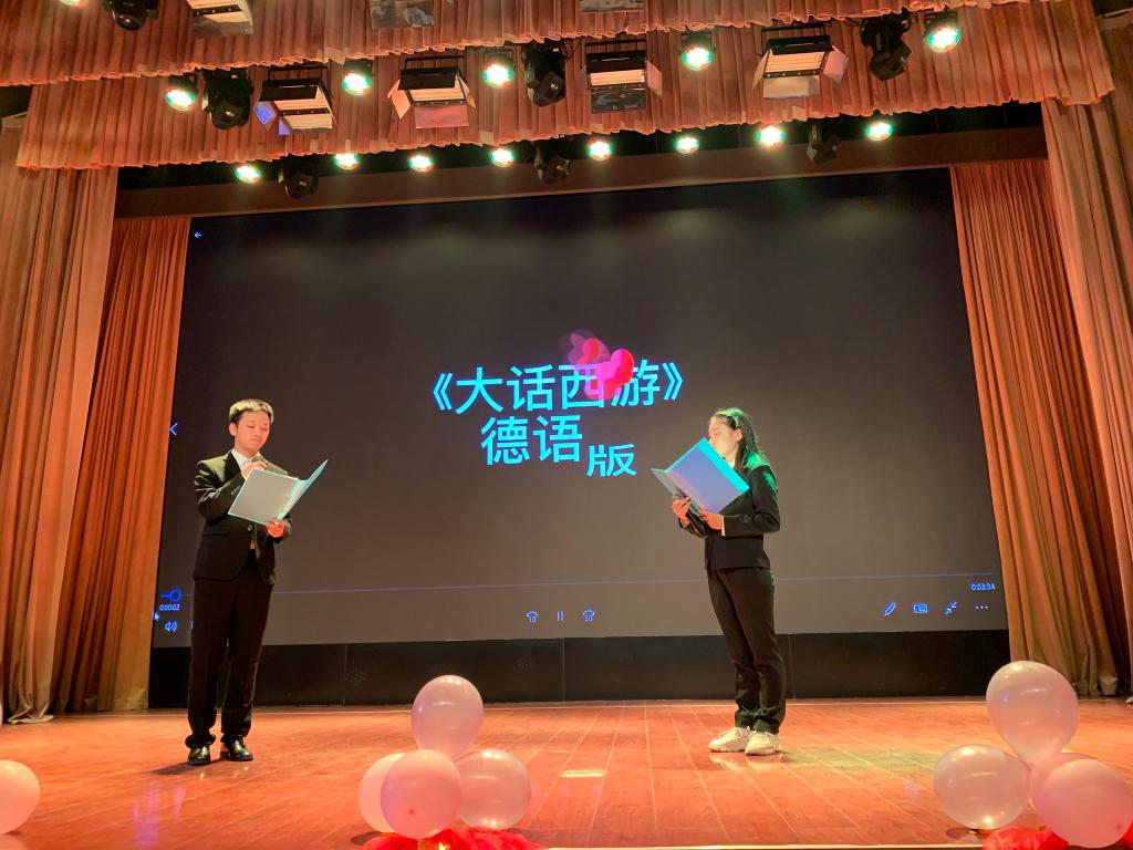 接着,张樱舰和冉江来同学带来了德语版《大话西游》的精彩片段,让同学们感受到了德语的魅力。忍不住幻想,期望时光可以重来,一切可以重新修订。有时候我们缅怀过去,其实就是留恋那段时光的美丽,但,过去是不可重温的,很多怀有重温梦想的人最终的结果都是失落告终。