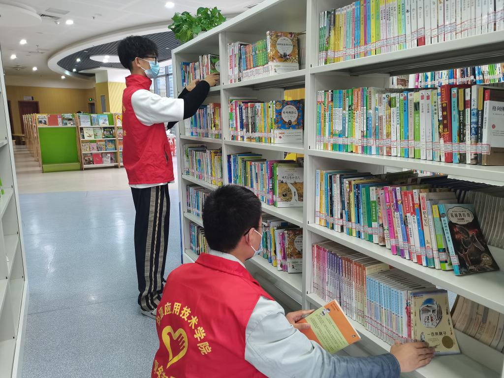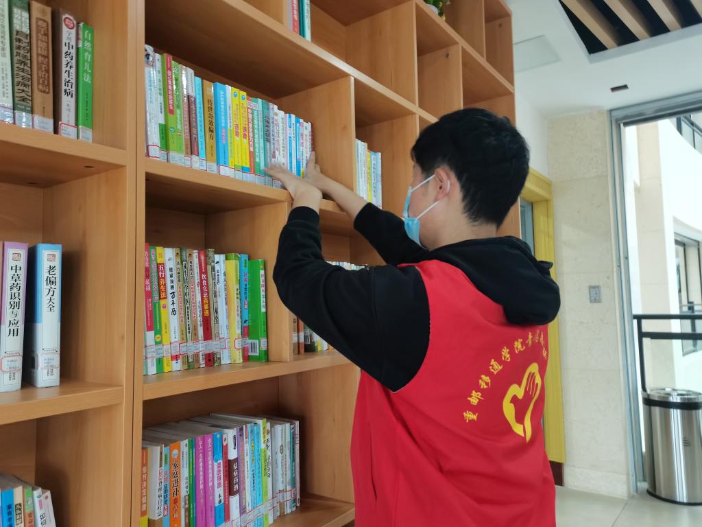 各位志愿者在整理图书的过程中,将他人在阅读后随手堆放的图书进行整理分类,此项工作看似简单轻松,但却非常考验志愿者们的耐心。在整理书籍时,有读者前来寻求志愿者的帮助,他们都会毫不吝惜自己的热情去帮助读者寻找他们所需要的书籍。