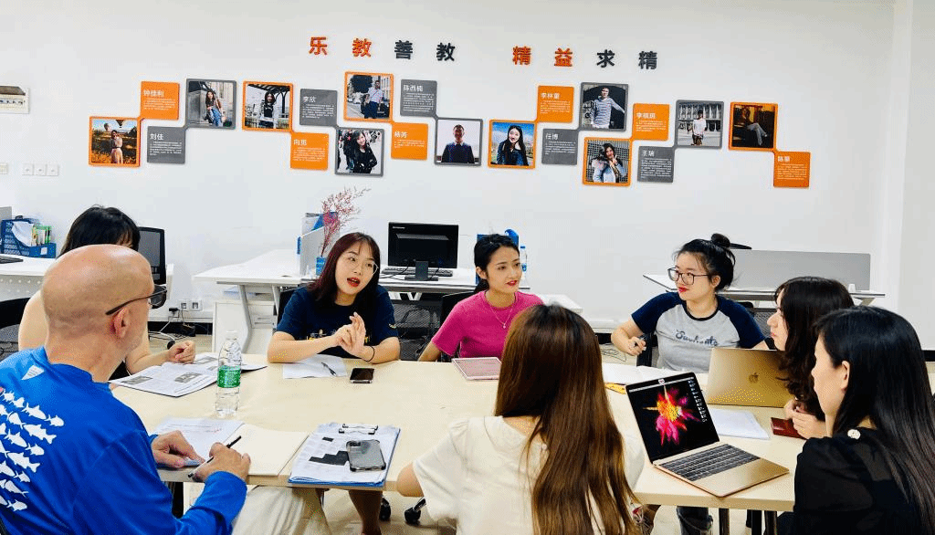 外教Peter指出学生不擅长把老师教的词汇等应用到实际回答中,这是目前课程的一个痛点。就此,老师们提出了建议,比如从学生的思路出发,找出其偏离的方向,进行改正,这样的方式学生更易接受;比如用checklist的方式,每使用一个新学的词汇,便勾选该词,以此检验真实应用程度。