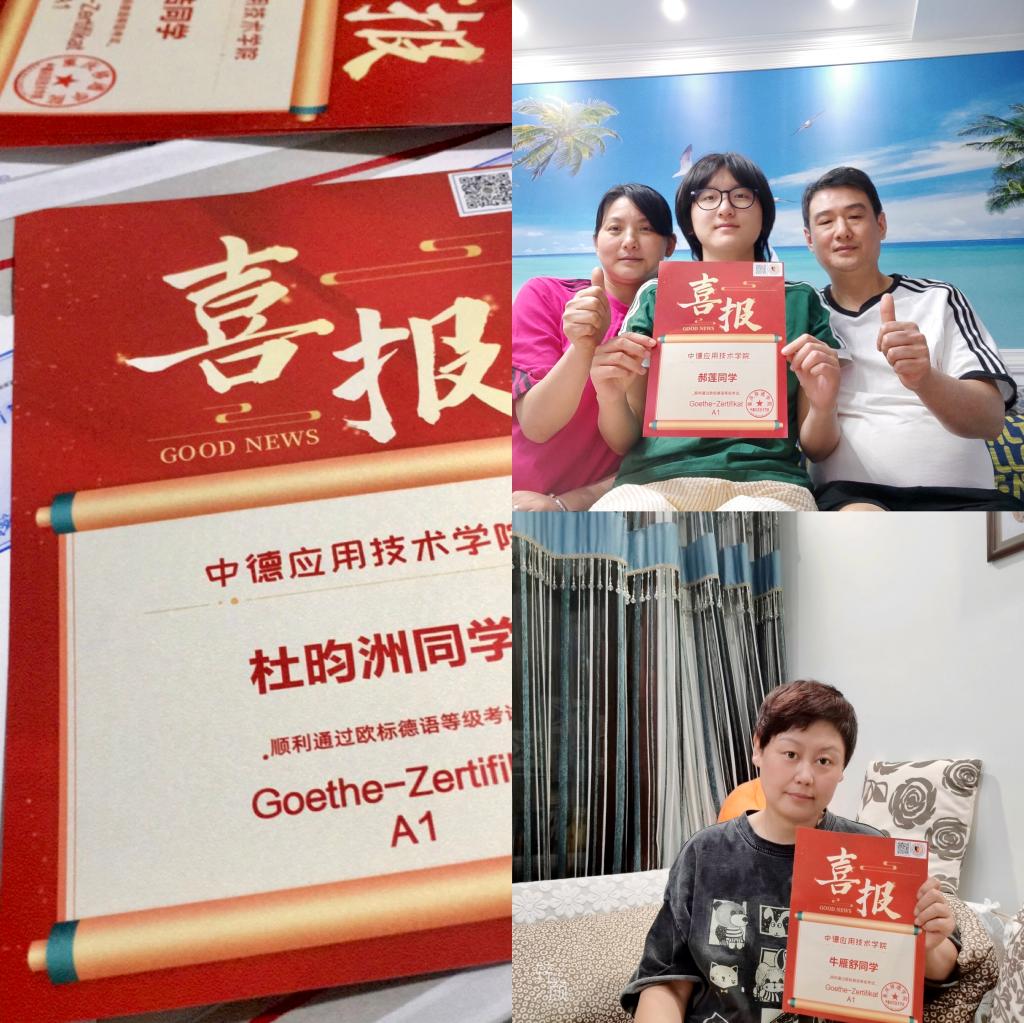 本次“喜报”寄送范围为中德应用技术学院2020级通过欧标德语等级考试的学生,共计41名。喜报包括学生姓名、学生所获成果介绍、学院联系方式三部分,简单的喜报内容传递了学院对学生及家长的祝贺与对学生的认可和赞许,同时家长通过喜报上的联系方式能更好地了解学院基本情况。