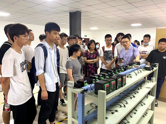 在各部门负责人的带领下,我校师生主要参观重庆金华电器成套有限公司相关部或区域:金华培训中心、技术研发中心、销售中心、生产部,产品检测中心、二次线束加工中心、钣金加工中心、柜体组合生产线等。在参观过程中,同学们与各部门负责人进行了亲切互动和交谈并了解公司各方面情况。