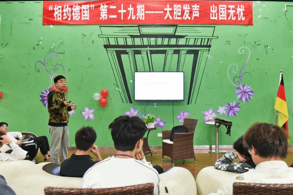 时光荏苒,在同学们的学习道路上总会伴随着愉悦和困惑。就中德文化交流和语言学习方面,同学们也会存在各种各样的问题,为了满足同学们学习上的需求,提供畅通自由的分享平台,中德应用技术学院在2021年4月14日下午4点于中德书屋举办第二十九期相约德国主题沙龙讲座——大胆发声,出国无忧。