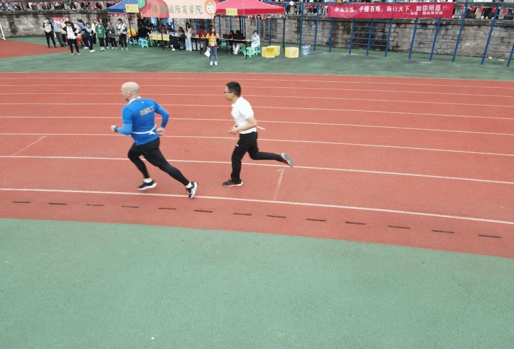 绿色竞技场,红色胶皮跑道,体现的是我校同学们的青春无极限,比赛中,同学们奋进努力,表现出色,尤如离弦的箭一样在赛场上驰骋拼搏,充分展示了我们同学的风采神气。中德学院大本营上,观众同学们也是气势如虹,在为我们参加比赛的同学和老师加油助威,呐喊声,加油声,延绵不断,这声音也是一种无形的力量,推进这运动员们奋勇向前,活力拼搏。