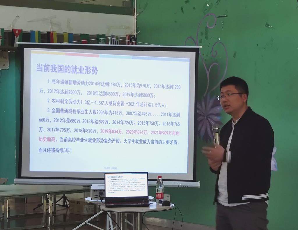 首先,佘桂隆老师给同学们分享了当前我国就业形势的一组数据,让同学们了解到当前高校毕业生就业形势复杂严峻。为使同学们明白到自己处于哪个阶段,问了在场同学们希望自己以后一个月工资是多少。同学们踊跃回答,有的同学想一个月四千,有的同学想一个月五千,更有同学想要一个月一万。然后佘老师通过有趣的竞拍方式又抛出了一个问题,问了同学们一生要赚多少钱才够用?在这个问题的里,又通过孝顺父母、抚育儿女、家庭开支、休闲生活等方面与同学们展开了心与心的交流。