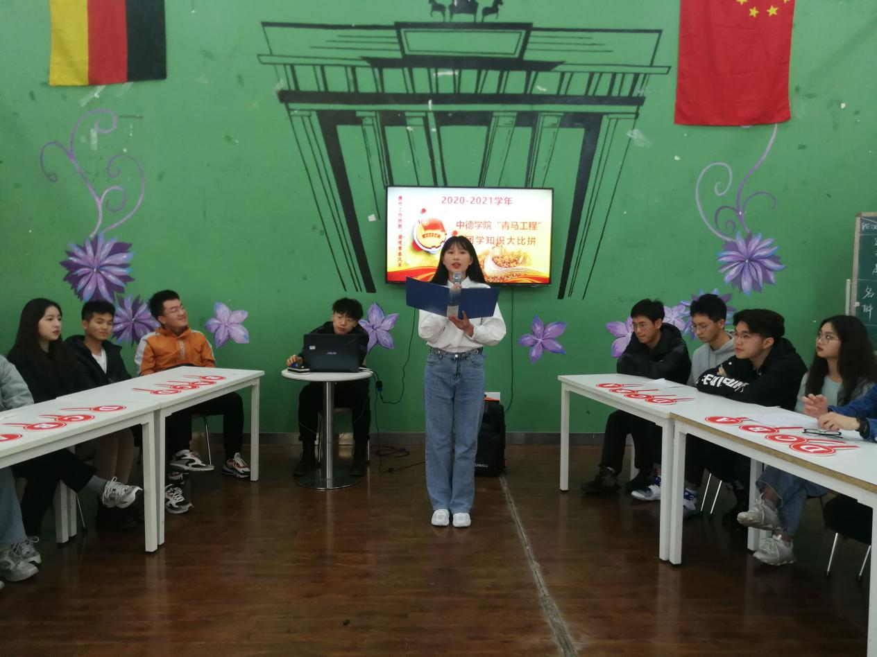 为深入学习宣传贯彻习近平新时代中国特色社会主义思想的十九大精神,在2021年3月10日下午4时,2020-2021学年中德学院“青马工程”团学知识大比拼在中德书屋举行。此次知识竞赛的主题是“青年大学习,团干有担当”,比赛的评委由我院团总支学生会学生处书记安启东,学生会主席钱坤、牛梅青,青年志愿者协会主席杨昱成来担任。