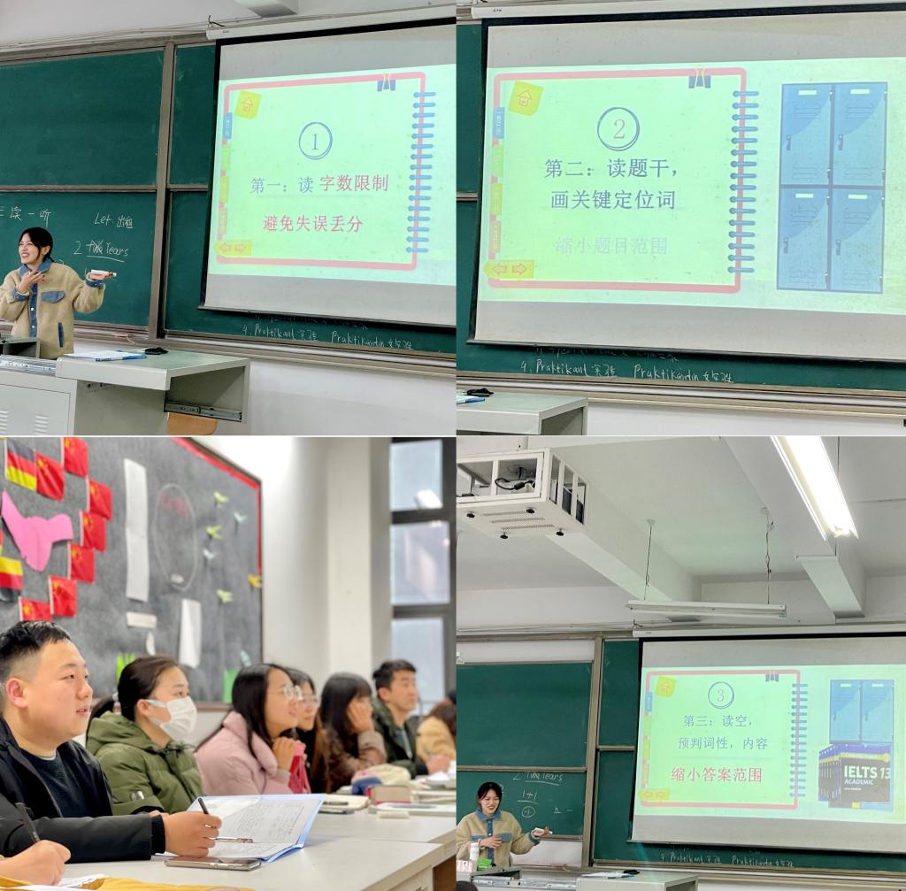 公开课上,蒋老师通过有趣的“找钥匙”的游戏方式把我们引入到课堂教学中,并延伸出雅思听力考试中填空题的正确做题步骤以及方法:首先字数限制是做题的关键,同学们在审题时要着重注意阿拉伯数字以及+,或者/ 等符号将字数限制要求,并标注;其次,分析题干以及答案空;最后,勾画题目的关键词时的侧重点,先直接定位词再间接定位词。每次引导同学们找到正确的“钥匙”后,蒋老师也会利用习题演练来验证该方法的正确性。在场的老师们都沉浸在这种趣味性的教学模式中,并纷纷表示蒋老师的课堂是“乐教、乐学”的鲜活体现。