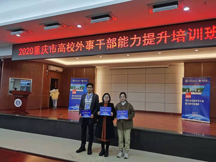 12月5日-8日,由重庆市教育委员会举办、西南大学承办的“2020重庆市高校外事干部能力提升培训班”在西南大学顺利举办。参加培训班的有来自重庆市各大高校的近200名外事管理干部及外事工作人员。重庆市教委国际合作与交流处处长李斌,西南大学党委常委、副校长崔延强教授出席开班典礼。12月8日上午,我院胡方洋老师在培训班上做了“重庆邮电大学移通学院中德合作办学人才培养探索”的主题发言。