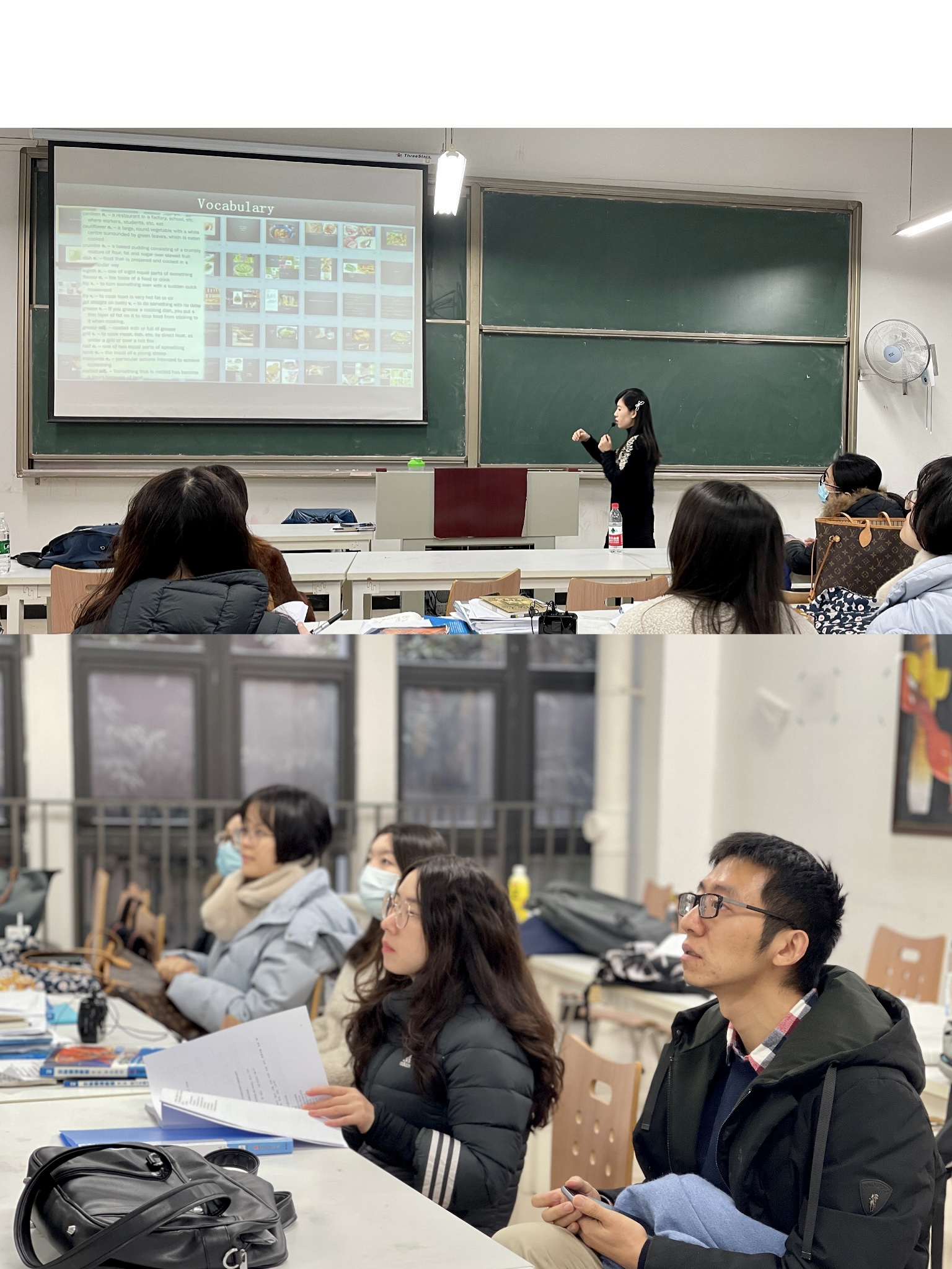 首先,李欣老师向在场的教师明确本堂课的教学目的主要是“激励大一新生建立起自信开口说”。李老师提到“互动式课堂教学”是一个多层次、多功能、综合运用各种感官的活动,是教学双向作用复杂而又细致的过程,这就要求教育者改变传统的教学模式,更新教学理念,优化教学课堂,为学生营造出国留学氛围的同时,也要使轻松活跃的学习氛围更加浓郁,从而学生能够在真实的语境中主动学与乐学,达到提高雅思教学的实效。