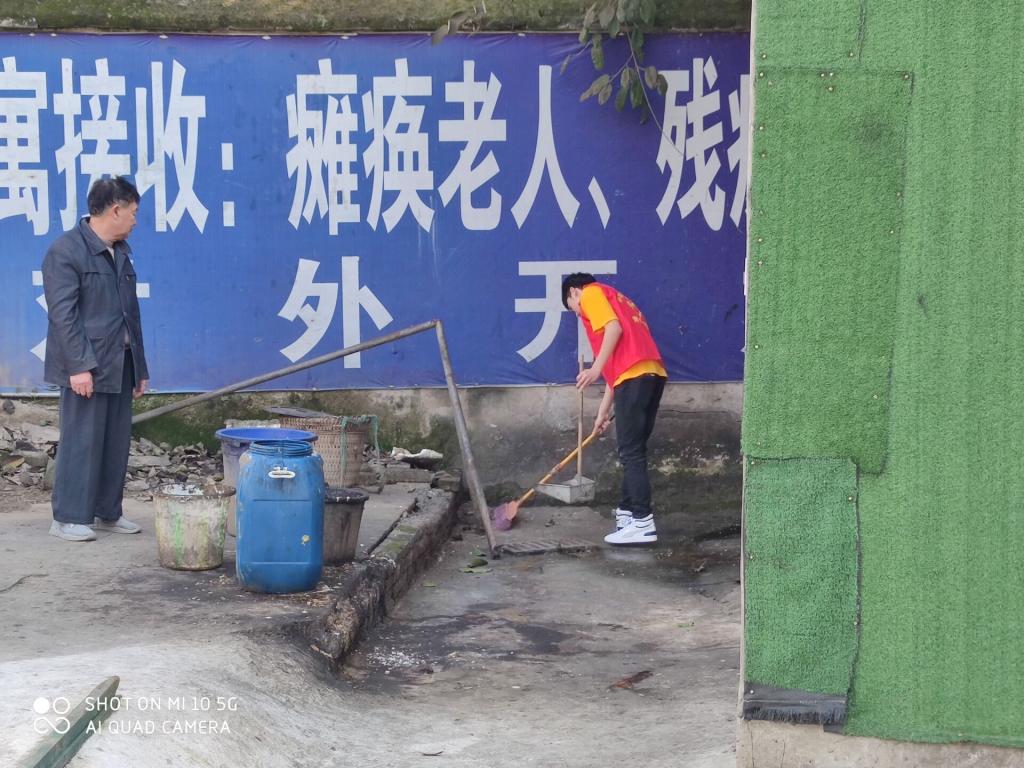 活动其实很简单,按着队长提前分配好的任务,我们分组帮老人打扫卫生,收拾院子,感觉自己又回到了家一样,帮家里做点力所能及的家务。男孩子有力气就做一些力气活帮着老人们打扫院子,姑娘们也一点没有闲下来,帮助老人们穿衣穿袜,整理床褥,还把老人的被子拿出去晒了一下,陪老人拉起家乡话。