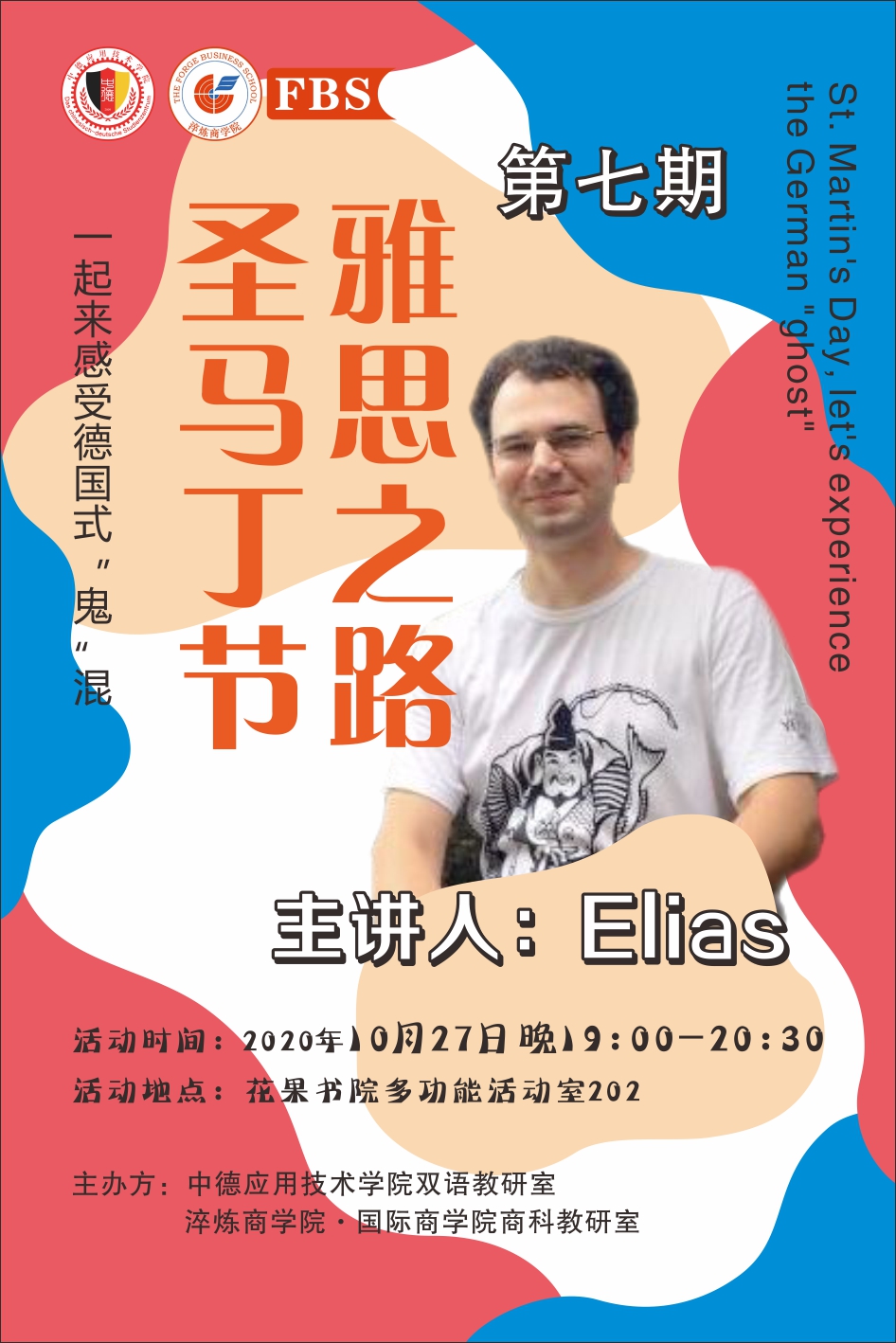 别过夏花绚烂,走进秋叶静美。为丰富中德应用技术学院与淬炼·国际商学院的国际化元素,进一步锻炼提升同学们的英语口语表达能力,中德应用技术学院双语教研室与淬炼·国际商学院国际商科教研室秉承“四位一体+双院制”的人才培养模式,于近期在花果书院多功能会议室联合开展了以“圣马丁节”为主题的第七期雅思之路沙龙活动。此次沙龙由中德学院雅思老师钟佳利老师与外教Elias联合主持,气氛活跃。