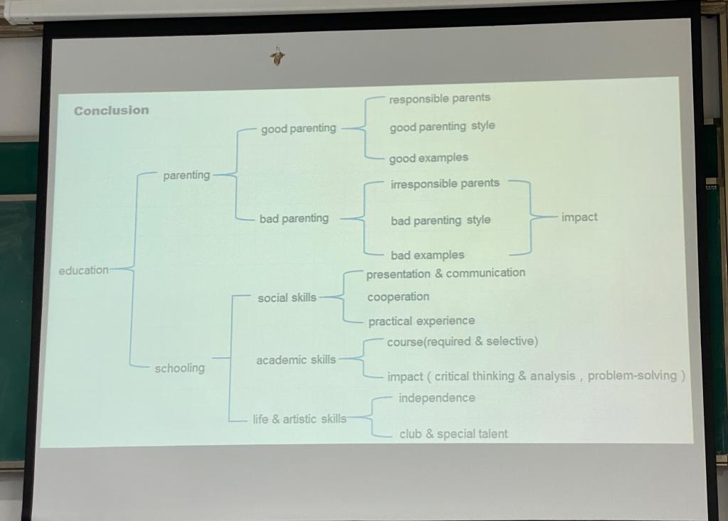 其次,为了针对性地提升雅思学子们写作部分的分数,陈老师就今年的雅思写作大作文考试数据进行了科学系统的分析:作文考试的重点主题主要集中在教育(education)类型,而考生们在复习备考时,往往对大作文的逻辑和相关的语料掌握不清晰。于是,陈老师从逻辑和语料两方面入手,详尽分析了在教育类话题考试的题目中能够运用的写作逻辑结构和语料的逻辑思维导图。这不仅给各位雅思老师提供了大作文教学核心的理论框架,也更加启发了雅思教师们针对写作方面的教学灵感。此外,陈老师就雅思考试写作其余主题部分,如社会文化,全球化,政府话题中的逻辑和语料应用等主题进行了讲解,并邀请雅思教师们参与到更加深入的研讨之中。