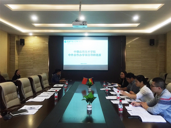 为落实学校“四位一体”办学定位,提升我院教育教学质量和国际化水平,打造学院“家”文化,营造良好的出国留学氛围,提高学生出国学习的能力,根据《重庆邮电大学移通学院中德应用技术学院(南湖书院)中外合作办学项目导师制方案(试行)》指导精神,我院于9月23日16:00在会议室顺利开展中外合作办学项目导师选拔工作。本次选拔工作有幸邀请到学校校长助理、教务处处长刘枚及我院院长尹浩亮,副院长侯宇晶、武强义担任评委,选拔活动由侯宇晶副院长主持。