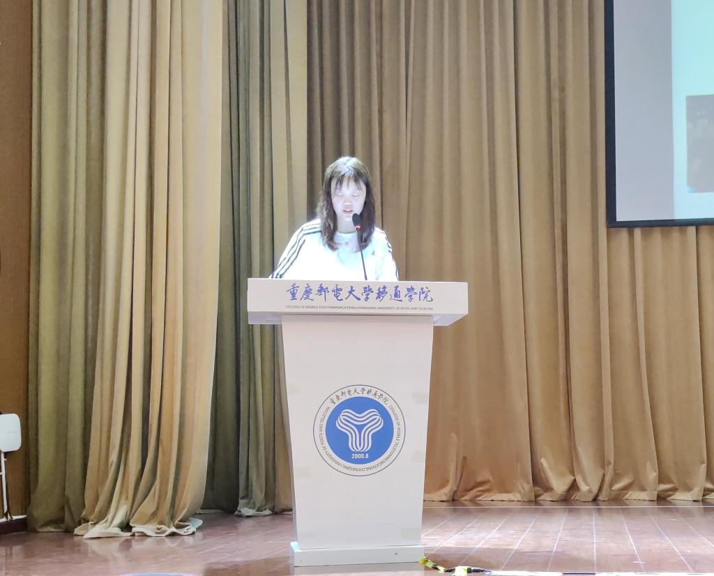 然后学生代表杨璟怡同学上来分享她在移通、在中德学院1年的所感所想。杨璟怡同学通过分享自身的经历来激发大家,哪怕遇到了再大的困难,挫折,也要迎风而上,努力的朝自己的目标走去。