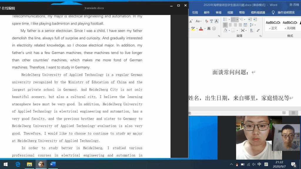 为进一步促进中德学院与德国海德堡应用技术大学的合作与交流,9月5日,在学院领导的指导下,我院为2017级电气工程及其自动化(中外合作办学)专业的38名预赴德国海德堡应用技术大学留学的同学成功举办了一场别开生面的线上签证模拟面试。