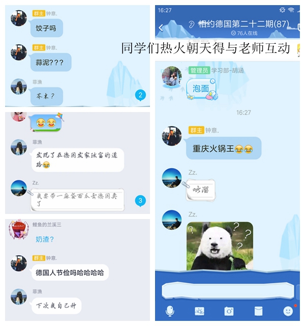 接下来,吕老师还提到德国学生公寓,提及了学生公寓的优势建议留学的时候一定要尽力申请学校公寓,自己在外租房子,成本相对较高。在德国除了学习,还应该多走出去看看窗外和远方的风景,吕老师分享了他所去国家和地方的美景,让同学们对外面的世界有些许美好的期待,在确保安全的前提下,抓住机会多去一些欧盟国家看看。然后,吕老师就中德课堂教学的差异进行了细致的对比,细致描述了德国学习氛围,海德堡大学暑假期间都座无虚席,告诫同学们出国后更要好好学习,提前让同学们有了心里上的准备。最后,同学们也就老师的讲解提出了自己的疑问,吕老师也一一解答,此次线上活动我们了解到德国的文化底蕴,饮食起居,通过吕老师风趣幽默的讲说了解到德国的文化,同时吕老师也对中德学子走出国门给予了鼓励,此次线上分享交流会让同学们心中的疑问找到了答案!
