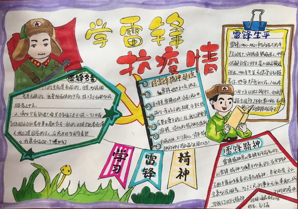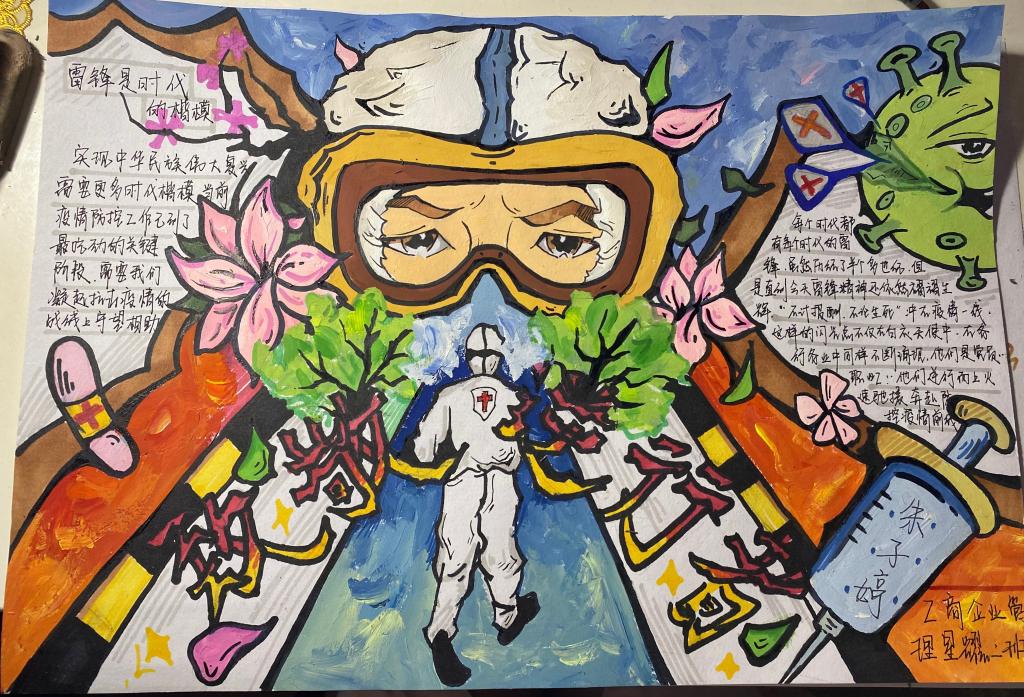 本次手抄报主题是:弘扬雷锋精神、助力疫情防控。雷锋与抗疫两种元素在同学们手中于纸面上勾勒出一道靓丽的风景线。经过前期各方面的宣传,本次活动吸引到了许多同学的围观和参与,经过层层选拔我们收到了29份优秀作品,他们用自己的画笔,表达了各自对雷锋精神的理解,赞扬了在疫情期间挺身而出的逆行者们,展现了作为当代青年的精神面貌!
