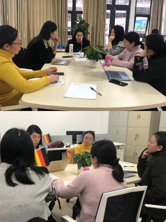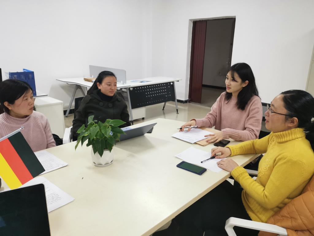 中德学院始终坚定不移地贯彻学校“四位一体”的办学理念,在专业教育上,不断完善教学水平,深化教学方法,加强教师队伍建设。期末渐进,为进一步落实专业教育工作,中德应用技术学院于12月11日在双语教研室6217举行了 “老带新”交流总结会。此次活动有中德学院双语教师和德语教师共同参与,由李欣老师主持会议。