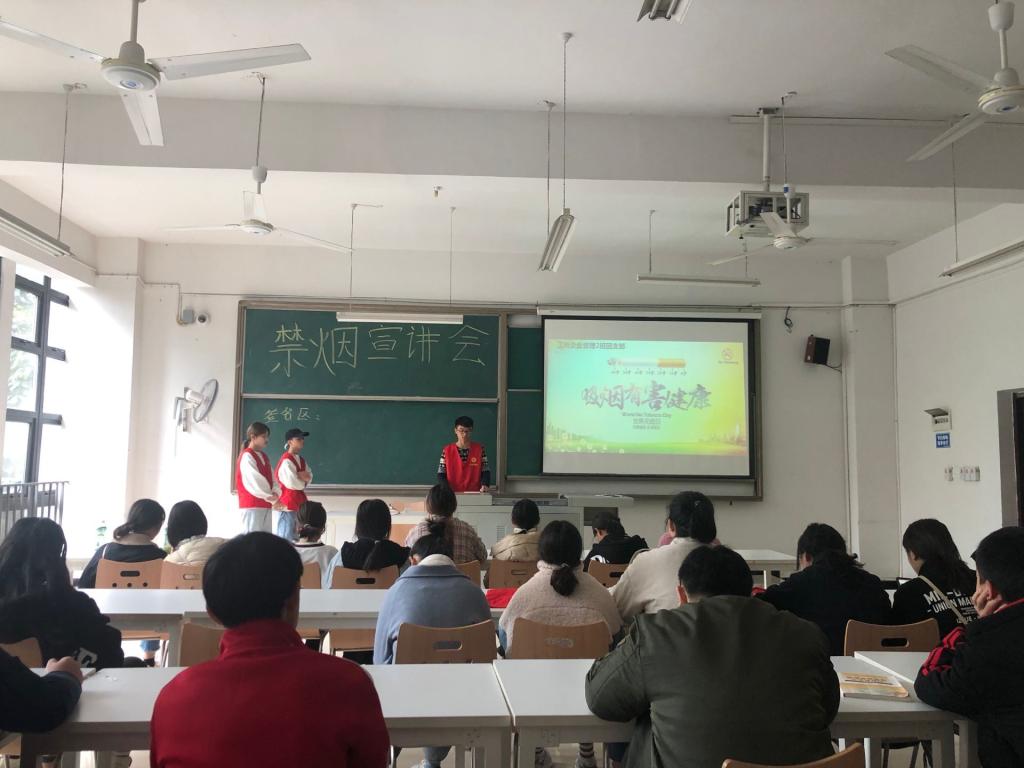 活动主要分为两部分,第一部分为禁烟宣讲会,第二部分为值班定点执勤,支部成员根据支部书记制定的工作分配表逐步进行,12点10分,在主持人的介绍下,禁烟宣讲会正式开始!