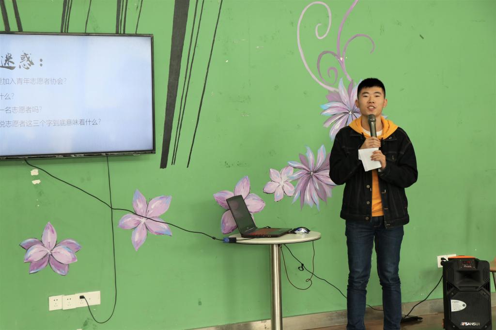 干栋帧学长为我们讲述了自己加入青协,在做干事和干部的过程中,自己心态发生的一次次改变。志愿服务工作让自己明白了:在志愿服务的道路上,不仅仅只有自己一个人,会有许许多多志同道合的人和我们一起奋斗,一起努力,一起相互协作,去收获成长,收获友谊。在最后,他为我们解读了志愿服务精神“奉献、友爱、互助、进步”的含义,提醒了我们这是作为志愿者最好的要求与目标。