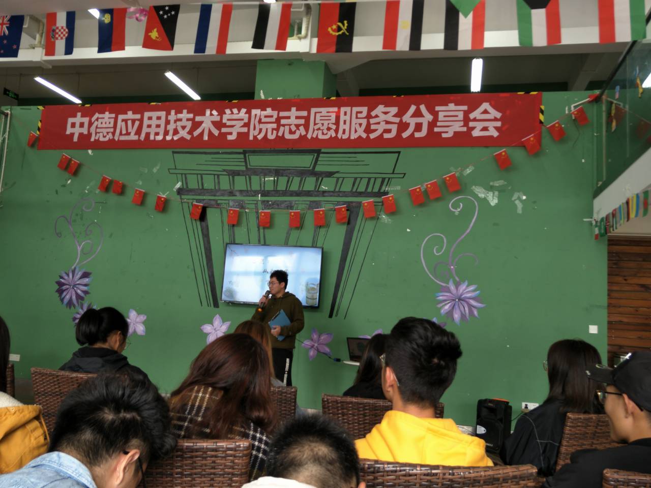 2019年11月7日12点,中德应用技术学院青年志愿者协会在六教中德书屋开展了中德学院志愿服务分享会。本次分享会邀请到了通信与物联网工程学院夏茂森和远景学院干栋帧两位学长向19级志愿者做志愿服务分享。