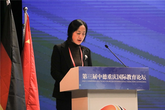 重庆翔美教育集团CEO、移通学院董事李茂军女士对来自中德两国的专家学者、政府领导、企业嘉宾、机构代表表示最热烈的欢迎。她表示,中德重庆国际教育论坛每三年举办一次,今年是第三届。与此相对应的大背景是:中国在加快建设世界水平的一流本科教育。这其中也包括建设一流的应用技术大学。在这方面,德国高校走在了世界的前列。我们希望通过论坛这个平台,加强中德两国高校间的交流,分享办学经验,提供解决方案,加强各方深层次的合作,促进产教融合与协同创新,探索中国应用技术大学建设与发展新路径,积极打造中国应用技术大学共同体。会议期间,重庆邮电大学移通学院将全力做好服务,为本届论坛的顺利举办做好全方位保障。此外,山城重庆的美景,三江汇流之地合川的美食,也值得各位品评,相信大家定会不虚此行。我们诚挚期待各位与会领导及嘉宾,对移通学院的各项工作提出宝贵意见,让我们携起手来,共同开启应用技术大学教育创新和育人路径的新篇章。