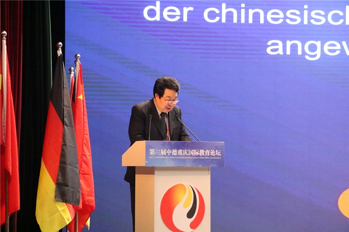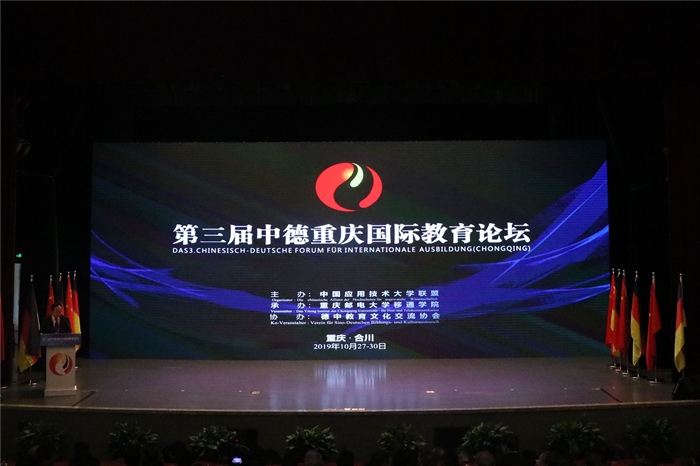 10月28日上午,由中国应用技术大学联盟主办、重庆邮电大学移通学院承办、德中教育文化交流协会协办的第三届中德重庆国际教育论坛在我校缤果大剧院举行。本次论坛以“应用技术大学的转型发展”为切入点,围绕“2018年全国教育大会背景下的中德合作办学质量提升方法”、“中国应用技术大学办学引进德国工程教育认证体系研究及实践”、“中德合作办学中的语言教学质量保障体系建设”等12个议题进行研讨,以促进联盟成员加强与国外同类大学的合作交流、探索中国特色应用技术大学办学体制、推动高等教育分类办学和特色发展为主要宗旨,得到了教育部各级领导、中德双方多所高校、专家学者、社会企业的关注和支持。