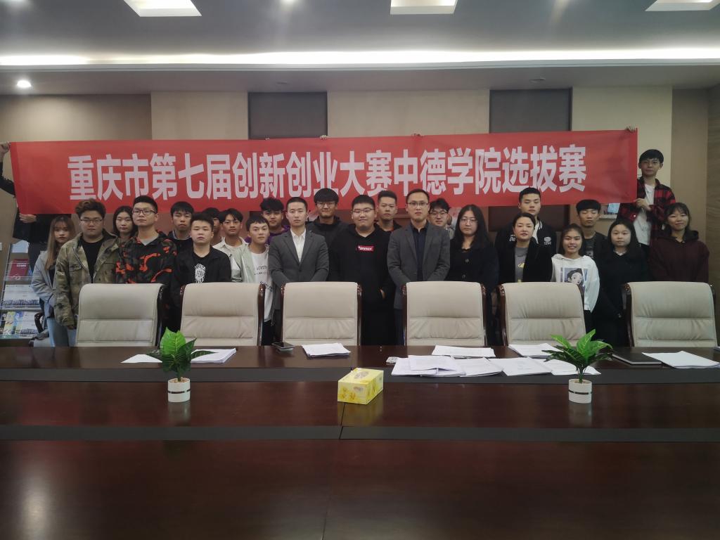 2019年10月16日16:00,重庆市第七届创新创业大赛中德学院选拔赛在中德会议室举行。中德学工办主任黄景龙,辅导员老师莫晓雯、李倩、学长韦俊龙、中德学生会主席陈冠华以及就业助理团副秘书长张海洋同学受邀担任此次比赛的评委。从各年级中初赛创业策划中选拔出来的八支队伍参加了答辩。