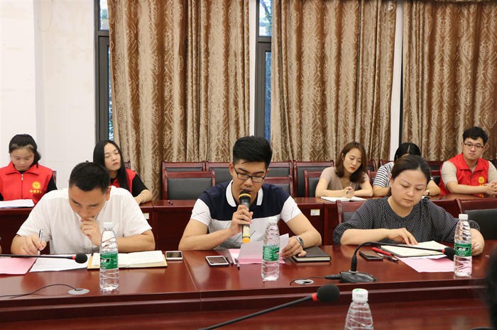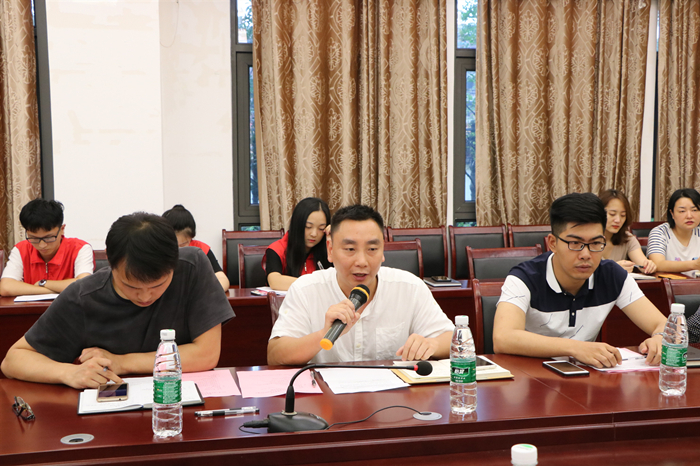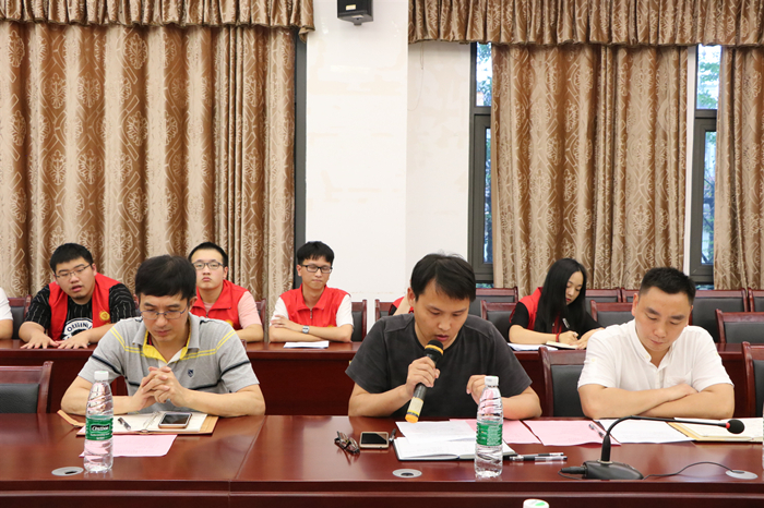 志愿者组的组长黄景龙对于论坛志愿者的选拔工作做了报告,本次论坛共需要125名志愿者,组委会自行选拔了35人,通过公开招募共有163名同学报名,最终选拔出70名志愿者,剩余20人将会从2019级新生中选拔。125名志愿者将会接受培训,使之成为宣传我校发展成就、展示我校办学定位的一张靓丽名片。秘书组的组长秦代辉对秘书组的工作进行汇报,他表示目前已收集到38篇论文作品,正在联系出版。接待组的组长赵昕说,“我们对于嘉宾的接待已经有了计划,将在衣食住行方面与各公司酒店保持联系,随时更新嘉宾人数,为参会嘉宾们提供良好的居住环境。”