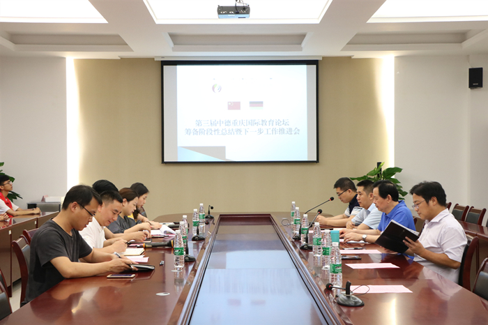 为阶段性总结中德重庆国际教育论坛筹备的各项工作,部署规划下一阶段工作,我校于6月27日在107会议室召开了第三届中德重庆教育论坛阶段性总结暨下一步工作推进会议。校长张德民,校长助理、国际交流与合作处处长尹浩亮以及组委会各小组全体成员参加此次会议。会议由中德应用技术学院副院长武强义主持。