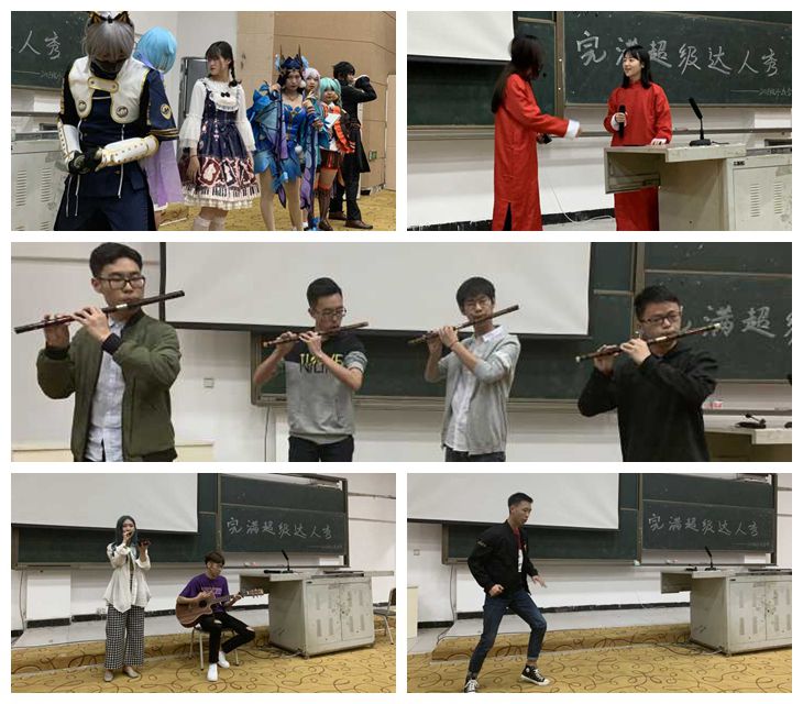 开场节目是动漫社的《动漫秀》,cosplay已不是单纯的模仿,而是一类文化艺术。随着音乐响起,coser 进场啦,虽然是在教室,但完全不影响他们的发挥,“只要心之所向,人生处处是舞台”。第二个节目是相声社带来的《白蛇传》,幽默的语言、流行的话题吸引着全场观众的注意力,观众们的笑声和欢呼声此起彼伏。然后,中德应用技术学院2018级艺术团学生带来弹唱歌曲《晴天》,男生弹着吉他,女生唱着歌,默契的配合、和谐的画面给人带来舒心的感受,给刚刚参加完运动会的观众们带来了一丝惬意。接下来是大学生艺术团舞蹈分团的同学带来的舞蹈《咆哮》,动感的音乐,帅气的动作,每一个力量的控制,每一个节奏点的合拍,十足展现了舞蹈分团的风采,让人感叹不愧是专业的。