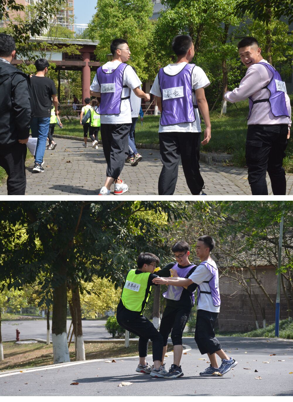 本次活动的新鲜性与积极性吸引了外班及外院的同学,其中还有3名来自重庆理工大学的同学,他们在网络上得知了本次活动,特地赶来参加。阳春三月,骄阳似火,灿烂阳光有些许不利于同学们的奔跑,班上工作人员提前到达了读者公园检查场地及道具,确保各位同学能有最好的游戏活动体验。到了两点,红队黑队橙队紫队黄队绿队天蓝队宝蓝队总共8队的同学集合签到完毕。每队5人,大家为了班里的荣誉,那种竭尽全力拼赢的激动溢于言表,同时观察我班的队员都有一颗超级想赢的心,他们知道也许自己跑的不是最快的的,但必胜的心态则是最坚决的。只见各位整装待发,跃跃欲试,让我们有充分理口由相信这是一场必赢的赛事,也表现了我班队员们们渴望在这赛场上显示力量、一决高下,为本班夺得荣誉充分信心。