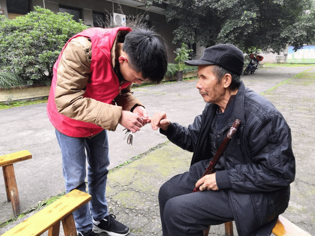 除了为老人表演,唠嗑,还安排出时间,分工合作,对老人们的屋室进行了卫生扫除,帮助老人们收拾床铺以及将老人房间中的杂物进行清理。美好的时光总是短暂的,时间转瞬即逝,到了我们与老人们道别的时间,同学们依依不舍的与老人们告别,在留恋中结束了本次养老院志愿服务活动。