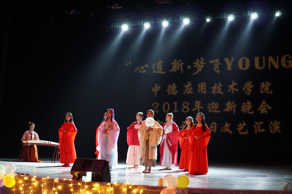 晚会开场,由我院艺术团带来的开场舞蹈《Sexy》,把现场的观众的热情带动了起来,青春靓丽的身姿,活泼的舞步,无不引人注目,舞蹈即展示了同学们精湛的舞技,又反映了积极向上的精神风貌,赢得观众的喝彩。诗朗诵《启航》,铿锵有力的声音震人心庞,每一句话都是对同学们最诚挚的祝愿,最美好的期望,感人肺腑。《父亲》《故乡》两首歌曲表达了外地学子对家人和故乡的思念,引起了同学们的共吟,温暖了现场。而在《汉服秀》上,女子身着汉家衣裳,广袖飘飘似有仙人的模样,汉服是汉民族的传统服饰,从黄帝垂衣裳而治天下到明末清初四千余年间发展出了体系完备,种类繁多的汉服体系,通过汉文化圈影响了众多国家,今天我们宣传汉服,着汉服,不仅是对单一服饰的追忆,更是通过这类载体,实现中华文化的复兴,中德学子国际化的教育方式,多元的交流机制,打造了宣传中华文化的窗口,所以我们义不容辞!中国复兴,文化先行。