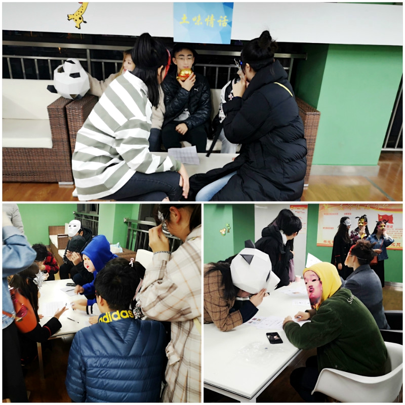 本次主题年级会以新颖、独特戴面具的形式开展,为此承办班级小众合班也准备了许久。通向中德书屋的优美小路上可以看到很多同学手里拿着各种面具,甚是引人注意;与此同时,班级工作人员“西游F4”、“草根F4”在门口欢迎着大家的到来;而此时此刻的中德书屋里,早早入场的同学们相互好奇着拍着照片,不听音调还真认不出来是谁是谁呢。