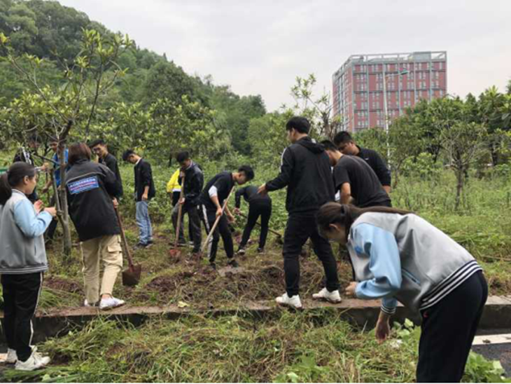 活动开展前,当听到能够通过自己双手的劳动让我们的校园更加美丽时,同学们都非常兴奋,有些来自城市不曾体验过农耕的同学更是跃跃欲试。刚刚经历过一场秋雨后的果园一片泥泞,同学们丝毫不介意弄脏自己的鞋子,带着工具一个接一个的走入了果园。