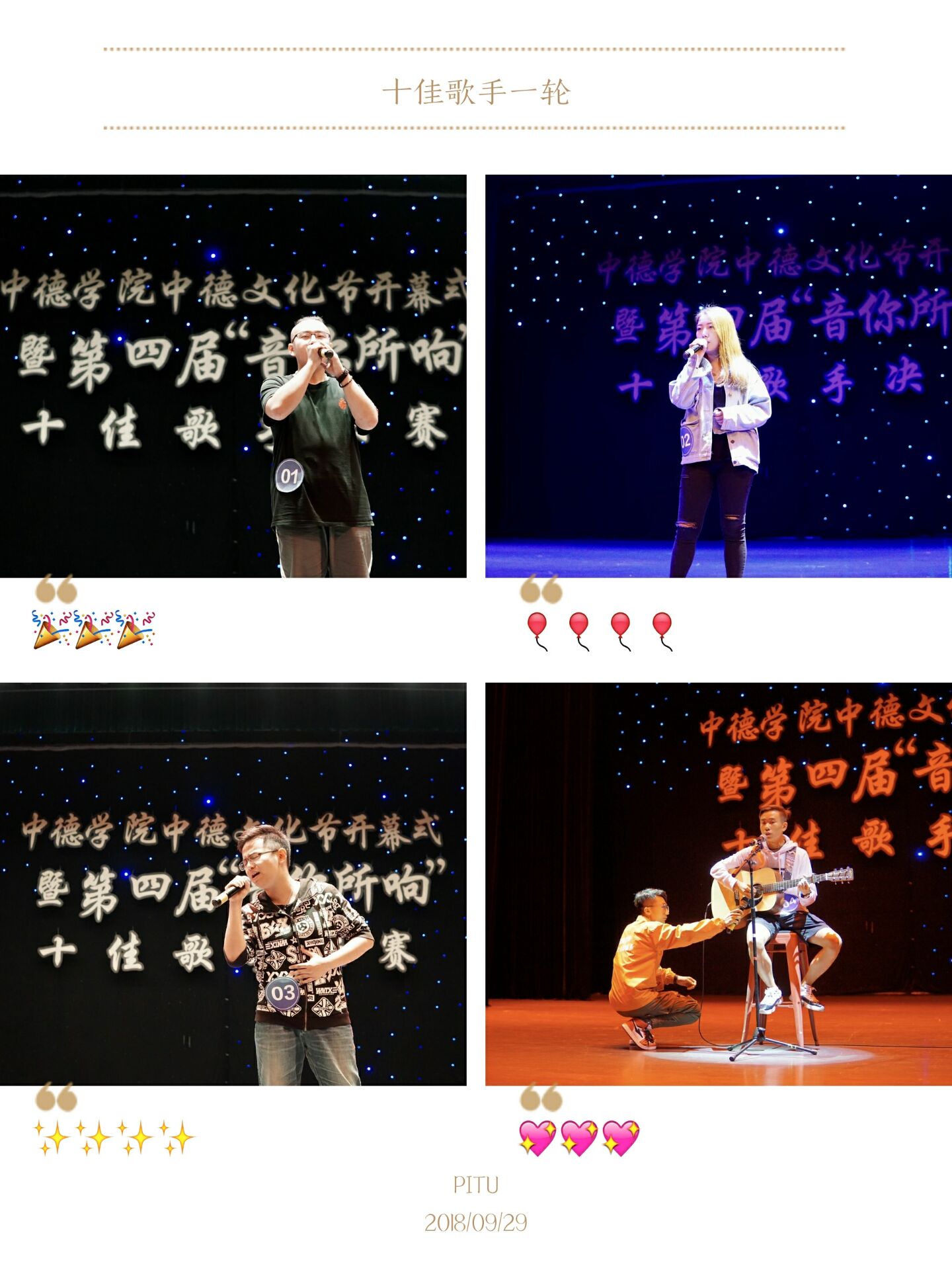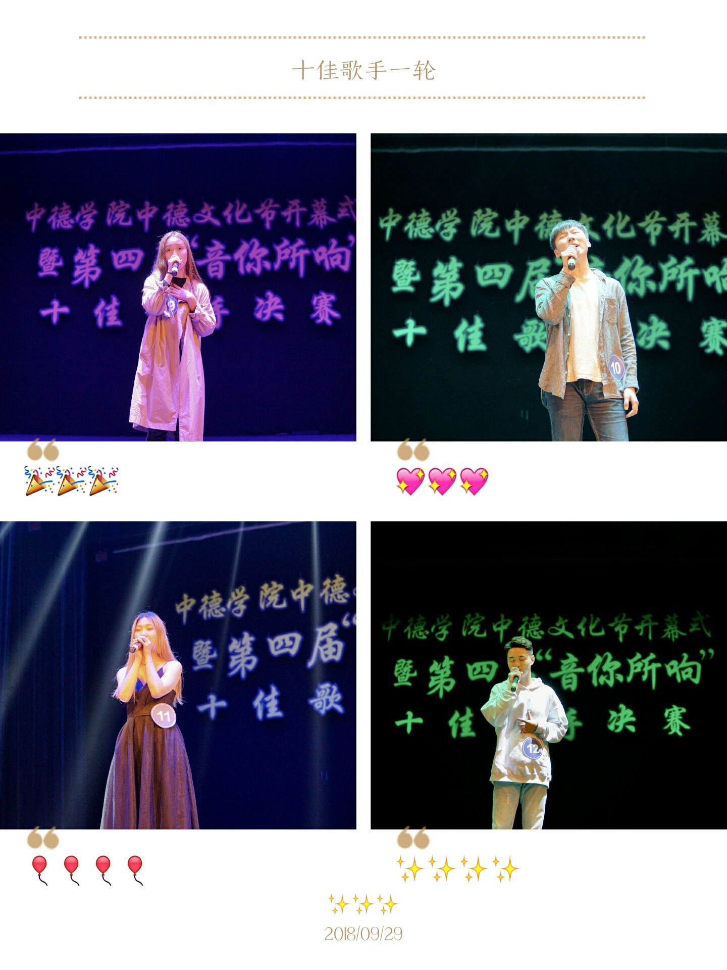 楚天千里清秋,水随天去秋无际。转眼间,中德文化节已走过了九个春秋,九年来,中德学院在人才培养与文化交流上结出累累硕果,而校园十佳歌手大赛作为中德学院重点建设文化交流活动的重要活动,也取得了不斐的成绩。艺术是文化的灵魂,文化是艺术的源泉。